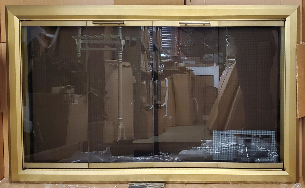 We have a few glass fireplace doors in stock that may suit your home.